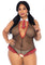 Rollenspel lingerie body voor een wannabee schoolmeisjes, bestaande uit een fishnet body met open kruis, afgewerkt met geruite rushes en een stropdasje.