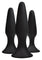 Three assorted sizes of firm, flexible and tapered plugs designed for effortless penetration. Velvety soft to the touch, these satin finish toys are easy to clean and safe to use with any lubricants. Each features a strong suction cup base for creative sexual fun.
