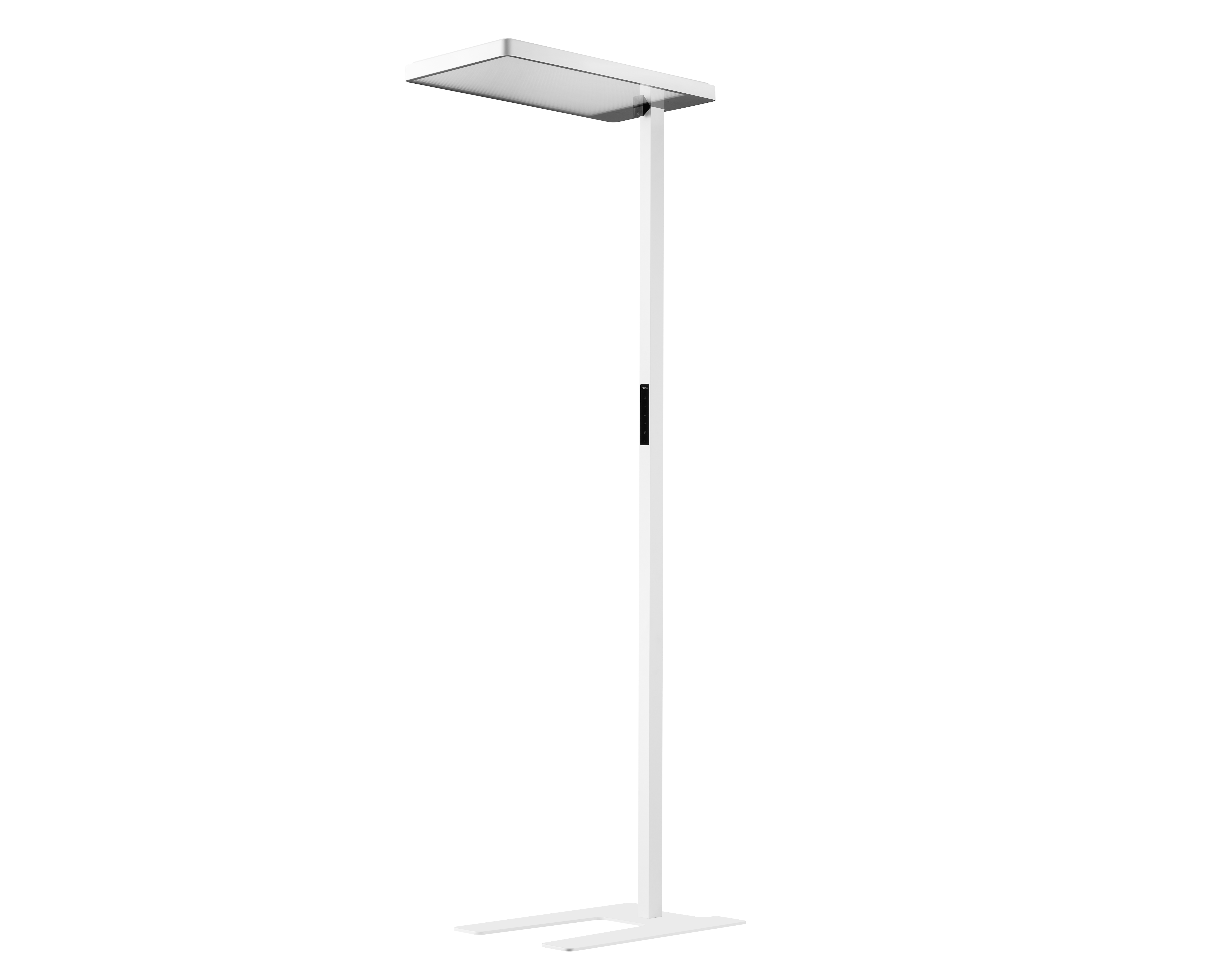 Modern staande armatuur met directe/indirecte lichtverdeling. Uiterst comfortabel licht (UGR<16). Stijlvolle tiptoetsbediening op paal. Geïntegreerde bewegings- en daglichtsensor. Hoge efficiëntie van 125 lm/w. Bediening via Smart App, verbinding met Smart Sensors mogelijk.